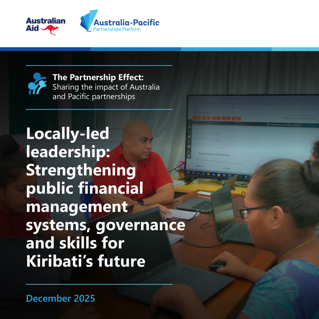 The Partnership Effect is a series of longer-form stories that document the impact of partnerships supported through the Australia-Pacific Partnership Platform and how these partnerships contribute to program outcomes, both intermediate and longer-term.